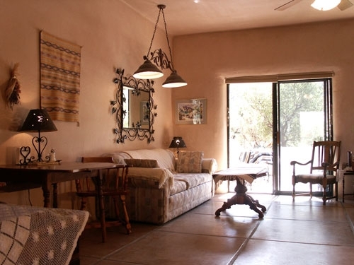 A complete “home away from home” – this peaceful refuge has stunning views Cochise Stronghold, A Canyon Nature Retreat & wildlife viewing… private bedroom, living & dining room, fully equipped kitchen, cast iron bath/shower, 2 queen size beds, twin futon, wood stove, private entrances, patio and porch… The entire facility for your exclusive use. Perfect for reunions, multi-family vacations, gatherings, celebrations and retreats. Beautiful outdoor settings and amenities for dining and play in the privacy of the canyon.