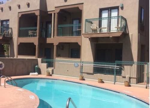Private patio near our outdoor spa with limited red rock views. Amenities include: 24 Hour check in service Daily Housekeeping No Minimum Stays All rooms have over-sized private baths Totally non-smoking “Sedona Dream” pillow top mattresses All beds dressed with custom duvets with Polarguard hypoallergenic comforters