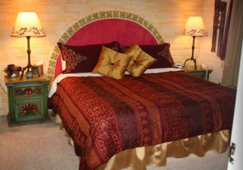 From El Paso: Take exit 279 and turn right onto Wentworth Rd. Go about a mile to Colossal Cave Rd. which veers to the right. About a ½ mile up the hill is Camino Loma Alta. Turn left and go about 6 miles to Old Spanish Trail. Turn left and go about another 6 miles to Camino Del Desierto. It is the first street on the left past The Settlement Smokehouse which you’ll see on your left. Turn left and look for a square inn sign just past the 2nd speed bump. Turn left and look for a stucco wall with a security gate. Turn right through the gate and follow the signs to the 3rd house (near the end of the road).