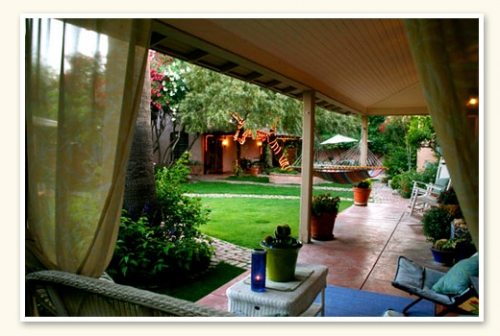 We are two short blocks west of the University of Arizona main gates, if you are looking for a great place to stay near the U of A, you could not be much closer. We are 1.5 blocks from Main Gate Square, Tucson's safest walking, shopping and dining district. Privately owned and family operated and now for nearly 25 years, we have consistently offered travelers to the Tucson a great place to stay with an atmosphere that is private, warm and upscale. We focus on serving great food, and our rooms are stocked with many complimentary amenities. Our Inn is comprised of five distinct buildings. The Main House is our private residence, it is where we greet guests for arrival and prepare our breakfasts. The East Wing House consists of two queen suites, each with a private entrance, sitting room, bedroom and bathroom. The Casita, our King Suite, is a private house to the back of the property. Our two guest houses, Sunrise & Sunset are two stories, two bedroom units. Our beautiful lush gardens and many private patios are surrounded by tall, rose bush covered walls, offering our guests maximum privacy.Your breakfast is prepared daily by Award Winning Pastry Chef Jill Light McCormick. Her breakfasts are quickly becoming legendary in town. Nationally renowned for many years for her cakes, pastries, and plated desserts, Jill has a knack of taking ordinary food and turning it into a work of art and at the same time, making it healthy. We also go out of our way to accomodate any special diets or restrictions that you may have and we ask if you have such upon your arrival.