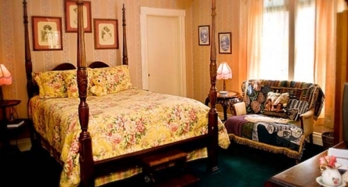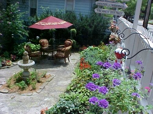 Our 1884 “Painted Lady” is listed on the National Register of Historic Places and has its own “Secret Garden”, a lovely sunken stone garden below street level that provides a respite for more rest and relaxation; it’s also an enchanting location for an intimate wedding. A trickling waterfall, ponds and wonderful yard art mix in with the beautiful colors and green foliage of the garden to give you the feeling of finally escaping the real world. All rooms have access to either the front porch or their own private deck area, so the opportunity for communing with nature abounds