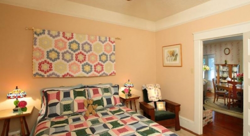 Holcomb House is a California Craftsman bungalow built at the turn of the century located within walking distance of historic downtown Healdsburg. Filled with furnishings that reflect the owners love of antiques, Holcomb House is tastefully accented with a quilt collection and other collectables that reflect the genre of the house. Holcomb House offers the uniqueness of being small, private and perfect for couples traveling together. During your stay, you will have access to the living and dining area where a wood-burning stove warms the house during cold weather. You have the option of two rooms. Room No. 1, furnished with a beautiful queen-size brass bed, has its own bath. Room No. 2 has a queen-size captains bed and private bath. Both rooms have TVs and VCRs. In the morning complimentry self-serve coffee and tea is provided. Holcomb House is a smoke-free environment Historic downtown Healdsburg Plaza offers an abundance of activity and is surrounded by specialty shops, coffee houses and restaurants. Other local activities include swimming at Veterans Memorial Beach, golfing at the local golf course, and, ten miles northwest of town, Lake Sonoma. Also within the vicinity of Healdsburg are over 100 wineries. The Pacific Ocean is just 40 minutes away. We love the relaxed friendly atmosphere of Healdsburg and invite you to come and enjoy our quieter lifestyle. We look forward to your visit.