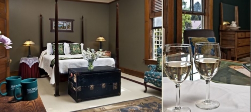 The McCloud Hotel sits on the slope of one of nature’s jewels, majestic Mount Shasta. The world famous fly fishing stream, the McCloud River, with its three waterfalls, is just a few miles away. Join the innkeepers in the lobby for a complimentary glass of wine and delicious snacks in the afternoon between 4 and 5 PM. Each day in our restaurant we prepare a full breakfast which is included with your stay. Relax with your coffee in the Lobby, then join us in the Dining Room anytime between 8:00 and 9:30 AM for a buffet of fresh homemade Baked Goods and Granola, plus Fresh Fruit and Juice, followed by your choice of breakfast items from our Menu including Eggs your way with Bacon or Sausage, Poached Egg Stacker, Lemon Ricotta Pancakes and Grand Marnier French Toast. Every afternoon between 4:00 and 5:00 PM, you can join the innkeepers in the Lobby for a complimentary glass of wine and a delicious tidbit from the kitchen. We have a nice Wine List with Wines from around the world and also several Beers. Dinner is served Wednesday through Sunday evenings from 5:30 until 8 PM at Amethyst, our onsite restaurant. We serve on the Garden Terrace when weather permits and in our Dining Room during inclement weather. Reservations are suggested, especially in the summer. WEDDINGS From a garden ceremony to a full, sit down dinner reception, the McCloud Hotel offers a wonderful Mt Shasta wedding venue for this most special of occasions. There is seating for about 75 in the Garden for the ceremony while we offer reception seating for 30 people indoors; outdoors we have seating for about 40. There are other venues in McCloud if you are having a larger reception. We’d be glad to give you additional information if you give us a call. PROPOSALS What could be more romantic than a proposal with a waterfall as the backdrop? The McCloud River Falls are just a five mile drive from the McCloud Hotel and we can provide a picnic lunch for Hotel guests. Also, our Garden has several secluded nooks that are perfect as places to pop the question. Outdoor recreation is unlimited. During winter there is both downhill and Nordic skiing, snowshoeing and dogsledding. Trout season opens in the spring along with hiking and whitewater rafting on the area’s larger rivers. Through the summer there are high mountain meadows filled with colorful wildflowers while the looming presence of Mount Shasta is an inspiration for contemplation and spiritual awareness all year long. Make sure you check out the amazing accommodations the McCloud Hotel offers.