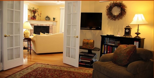 Adagio Inn offers a luxurious guest room and an apartment all designed with your utmost comfort in mind: comfortable king beds, fine linens and expansive, elegant surroundings. Aveda amenities are in the bathrooms and comfy rockers on the porch, looking down upon a really lovely garden. Free wireless Internet is available throughout the inn. There is also a first floor furnished apartment vacation rental - which is 1200 square feet, living room, dining room, kitchen, den, office, one bedroom and bath and large back patio. The apartment sleeps up to 4 people. Sonata Suite With a private entrance, this two-room suite is a world unto itself. The sitting room encourages curling up with a good book. Through the French doors the bedroom is furnished with a magnificent Italian bedroom suite. Decorated in rich gold and reds this suite is full of drama. Sonata offers an extra large bathroom. Sink into a two-person whirlpool tub and let the jets of warm water soothe you. There is also a separate shower. king size bed jetted 2-person tub iron/ironing board fridge cable TV and DVD hairdryer A/C and Heat Street parking Vacation Rental Apartment Amenities Zoned A/C and Heat Linens Provided Washer Dryer Street Parking Gas Fireplace Beds Queen Bed : The apartment has 1 BR with Q bd, and two sofas with Queen pullouts. it can sleep up to 4 adults. Convertible Bed (2) Entertainment Cable/Satellite TV DVD Video Library CD Player Kitchen Full Kitchen Cooking Utensils Provided Refrigerator Dishwasher Microwave Ice Maker Catering Available Outdoor Features Gas/Electric BBQ Grill Deck/Patio Communications Telephone Broadband Internet WiFi (Wireless Internet) Suitability Pet Friendly Smoking Not Allowed