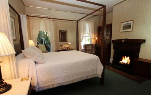 After crossing the bridge into Mendocino, take the second left at the stop light onto Little Lake Road. We are the first large white Victorian home on the hillside to your right.