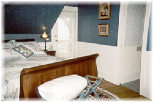 Romantic describes the roomy Needles Room, with its queen size iron wrap bed, private bath with clawfoot tub and shower.