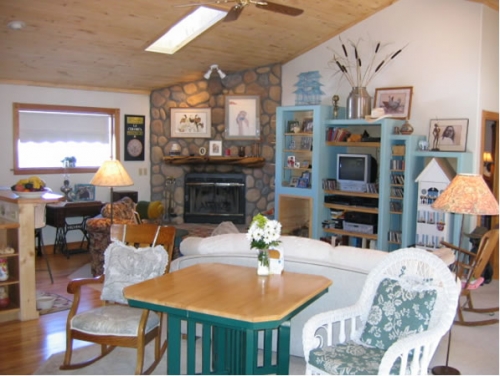 Cheerful characterizes the Crestone Room, by its queen size brass bed, see-thru stove, private bath with tub & hand-held shower.