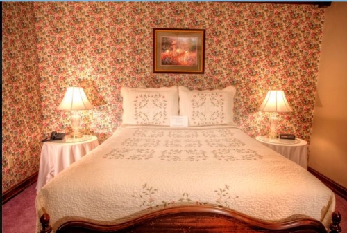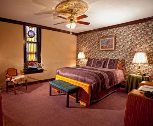 Today, two junior jacuzzi suites with queen-size beds, stained-glass windows, and private baths charm visitors. There’s also the grand Governor’s Suite, radiating romance with its four-poster king-size bed, magnificent stained-glass window, cuddly living room, and two private “his and hers” half baths and shower, plus a two-person Jacuzzi that begs long massaging soaks beneath the room’s original pressed-tin ceiling.