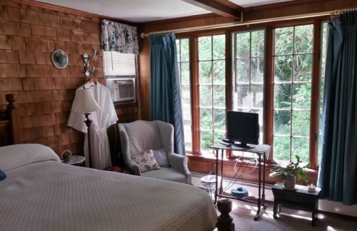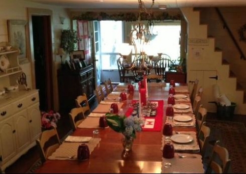The Dining Room is a favorite among guests who love to sit around the 12 foot 1 inch antique cherry table eating a bountiful continental-plus breakfast while swapping tips on where to go on the Cape. The room reflects the Cape Cod country spirit with its large poplar buffet. Later in the day guests can find teas, coffee and homemade chocolate chip cookies here.