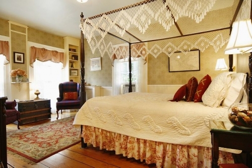 Each guest room offers either king, queen or twin beds. Amenities include private baths, plush towels and bath robes, fresh flowers (in season) and fine appointments. The entire inn has free wireless internet access.
