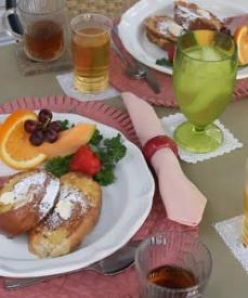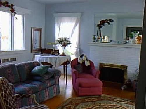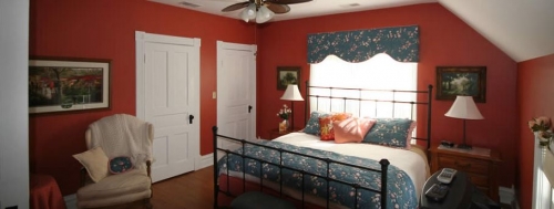 Six guestrooms (three with fireplaces) are tastefully furnished, air-conditioned, 2 king rooms have cable TV's, all have wireless computer access and enjoy private baths and removable feather beds, fresh air dried sheets and linens. 3 upstairs rooms in the historic side of the home have a small convenience center with table, chairs, refrigerator, and coffee pot. There are 3 rooms in the new addition. The 2 downstairs rooms are rented individually or as a suite with a family room (with fireplace, cable TV, private deck and entrance. The loft features a twin bedroom with sitting/study room.