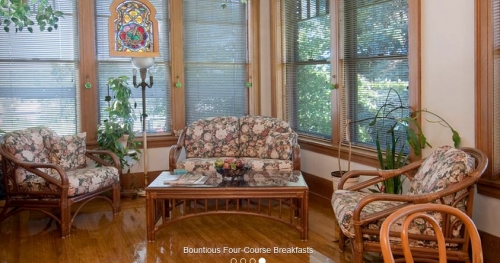 Enjoy the light of the morning sun on our all season sun porch while enjoying that first cup of coffee an hour before breakfast time. The table is set with fine china and crystal and the four courses of our breakfast are served to our guests at a time that is convenient for them. Special Diets and