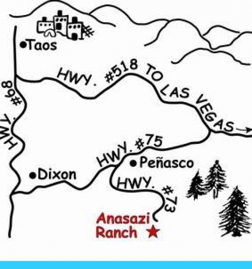 Enjoy the beauty and artist-inspired views of Northern New Mexico in the Sangre de Christo Mountains Martinez y Ewens Anasazi Ranch Llano, New Mexico on the High Road to Taos Bed and Breakfast Trout Fishing Guided Day Hikes into the Carson National Forest