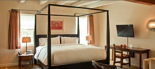 The Beautiful Historic Los Poblanos Ranch Guest rooms are classic New Mexican style with kiva fireplaces, original artwork, carved ceiling beams, hardwood floors, and antique New Mexican furnishings