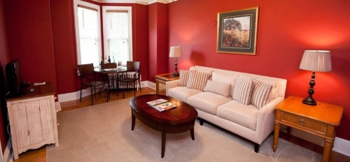 Our Premier Suite provides a relaxing atmosphere for guests desiring a long soak in their classic claw-foot tub. The suite features a cozy living room, separate bedroom with queen-size bed, and a large bathroom with granite floors. Our Premier Suites also feature a well-equipped micro-kitchen with bistro seating for your early morning coffee.