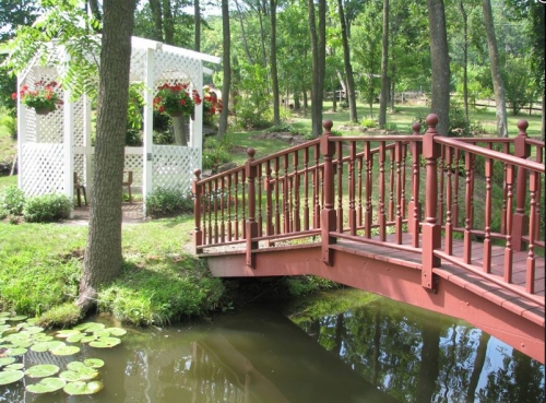 We offer seven large air - conditioned rooms, each equipped with private baths, flat screen TV’s, hair dryers and personal refrigerators. The Hummingbird Room and the Butterfly Room on the second level are separated by a private sitting area and deck overlooking the patio, goldfish pond and back woods.