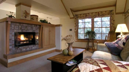 Sitting area with gas burning fireplace and love seat