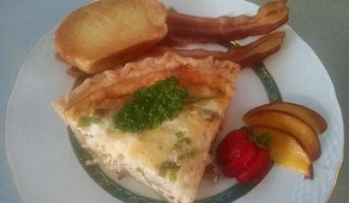 Flowers & Thyme Bed and Breakfast welcome you to start your day with a Wonderful Breakfast… Guests enjoy a full hot breakfast that is served at 8:30AM each morning in our Gathering Room, an airy commodious room with a magnificent vaulted ceiling and an expanse of windows overlooking the countryside. A three-course meal is served with fruit juice, blended coffee, or specialty teas for beginners. A seasonal fruit dish, followed by a hot entrée of either something savory or sweet, along with ham, bacon, or sausage to compliment the meal.