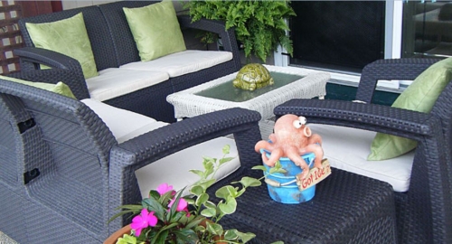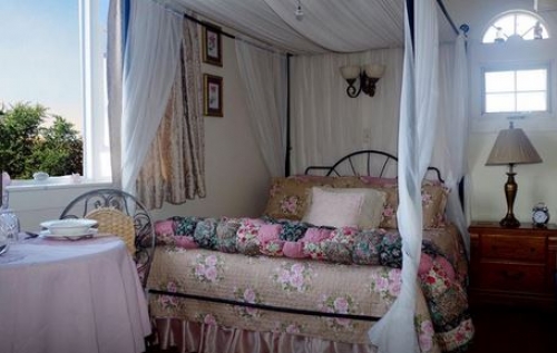 Best of all, you have private outside entrances to each room. You can have your personally served homemade breakfast either in your room or on your private patio area. For your convenience, your room has a TV, VCR, A/C, fans and WIFI computer access. There is a small refrigerator, coffee pot, and microwave. You never have to leave it. The second level guest room has a panoramic view of Almy Pond and a distant ocean view