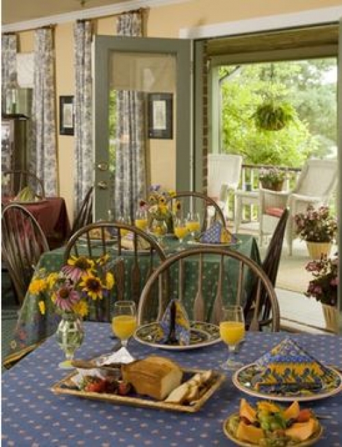 Our dining room where we provide your bountiful "mountain gourmet" breakfast each morning. Each guest room has its own table available for your dining pleasure & enjoyment.