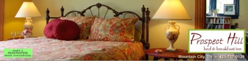 Prospect Hill Bed and Breakfast in Mountain City TN 801 W. Main St., Hwy. 67, Mountain City, TN 37683 1 423-727-0139 inn@prospect-hill.com Our GPS address: 36-28-36N 81-48-49W 2905′