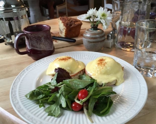 Complimentary snacks and popcorn in room Afternoon / evening tea and coffee available Microwave Computer with free High Speed Wireless Internet access and free guest printing Large selection of games and activities Large complimentary DVD library Large selection of books and current magazines Much more… A full gourmet breakfast is served each day, showcasing many fresh local Vermont ingredients and served with local Mocha Joe’s coffee on the patio in warm weather or in our sun filled breakfast room. Every day is different.