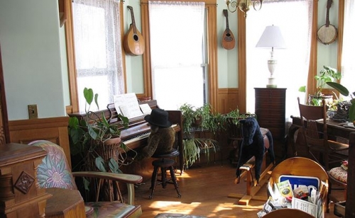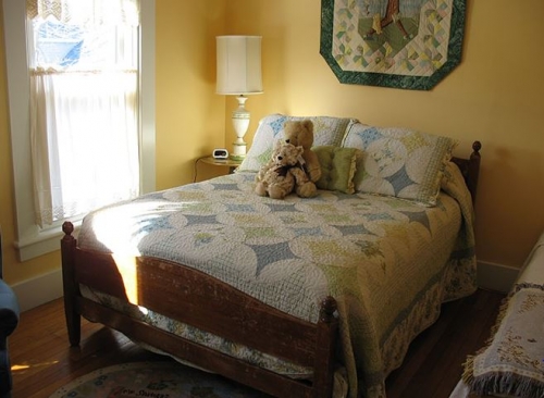Affordable cozy and romantic guest rooms, full private bath with shower and air-conditioning for hot weather days. A round room in the tower of this Victorian home overlooks the village green.