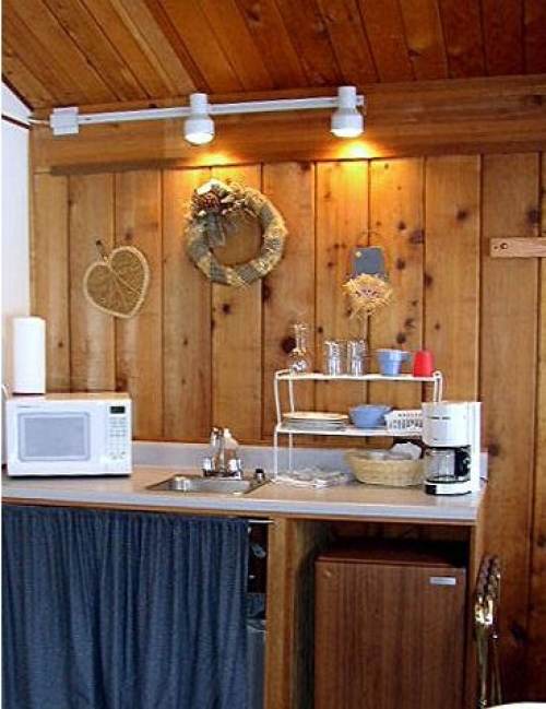 Our cozy and warm Garden Cabins sleep a maximum of four guests...best for a small family. They are clean, comfortable, and well-appointed with a snuggly queen-sized bed and two single-sized beds in the form of a day-bed and a trundle. All cabins are supplied with fresh, comfortable bedding and large, fluffy towels. Kitchenettes are quipped with a small refrigerator and microwave-oven cooking. A coffee-maker with coffee and tea are provided. Utensils and dishes are supplied for cooking and eating modest meals.