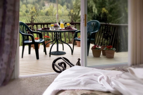 Morning begins with the delivery of a door-side tray of freshly brewed coffee, teas, hot chocolate, iced juices and a hand-made card listing the daily weather, tides and sunset information. Guests choose their wake-up times and individual breakfast times, with the earliest times being 7:00AM for wake up and 7:30AM for breakfast. While enjoying the main breakfast in the formal dining room or on either of the double decks, guests will enjoy looking out over the Misty Valley. Homemade breads, pastries and fruit dishes await the guests at the dining table.