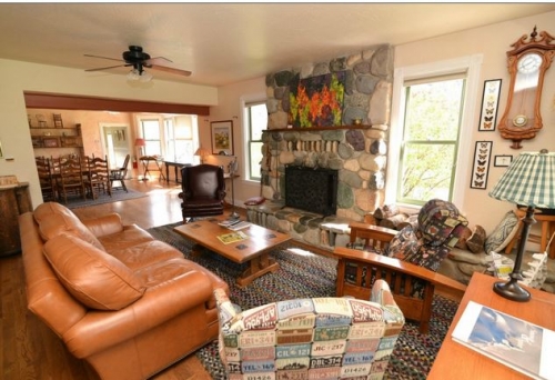 Methow Valley Inn welcomes you to visit and enjoy the romance, old world charm, comfort and luxury of this European style home, now renting as a Group Vacation Rental. Groups of 4 to 18 (including children) can stay right in the heart of the Methow Valley and have the full and sole use of the 2nd floor bedrooms, 1st floor public spaces, including the lovely farm style kitchen, the courtyard and gardens. The historic Inn serves up comfort, relaxation and is the perfect place to gather with the special people in your life: from the great room with its massive stone fireplace and comfortable furnishings; the inviting farm style kitchen with antique pine table; to the cozy TV room/library; – the ambiance of the past is all around. It is the prefect place to have your family reunion, spend time with groups of friends or get away for work retreats or trainings. The large, front porch with a porch swing and the gardens and grounds of the Inn provide many places to gather and offers up respite and peace – and it is all for the sole use of your group. Enjoy a glass of wine or beer in our shady courtyard to under the canopy of a 100 year old maple and walk to the theater, art galleries or dinner. Inn courtyard 01 (3)Each of the seven bedrooms is individually appointed, with handmade iron beds piled deep with European style comforters to snuggle under, hand-crafted quilts, and wood antiques. and old wood antiques. Four have private tiled bathrooms/showers, and three share a tiled full bathroom. All of this is tucked in the “real” town of Twisp in the heart of the Methow Vally. The Inn is only 10 minutes from the Winthrop town cross-country ski trailhead, 15 minutes from the local downhill ski area, the Loup Loup Ski Bowl, and close to super snowshoeing trails. Great bike riding is right outside your front door, hiking all around. The Methow Valley Inn also offers event and private function facility rental and works with local caterers to create fun-filled, memorable events. Methow Valley Inn 234 E 2nd Ave Twisp, WA 98856
